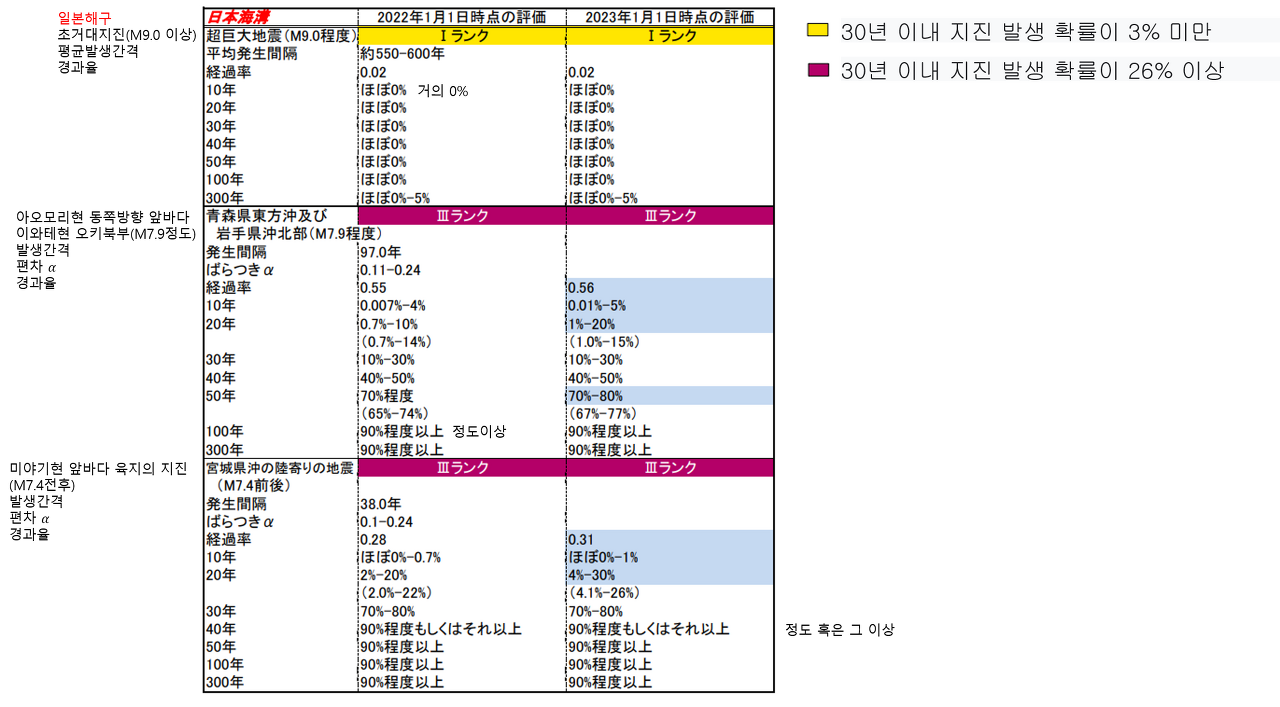 문부과학성 지진연구진흥본부, 일본, https://www.jishin.go.jp/main/chousa/23jan_kakuritsu/p01_hikaku.pdf >