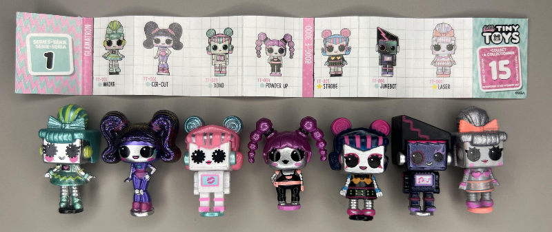 작은 장난감 상자 바깥쪽에 둥근 검정색 배경 번호 스티커첨부파일에서 확인하실 수 있습니다 이 숫자는 미니 글래퍼의 수그리고 1~18모으면 미니 글램퍼를 만들 수 있습니다.