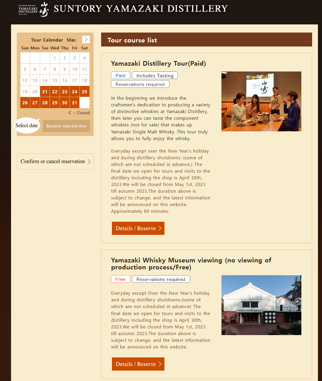 야마자키 증류소에 가시는 분들을 위해 예약 및 취소 방법을 정리했습니다.