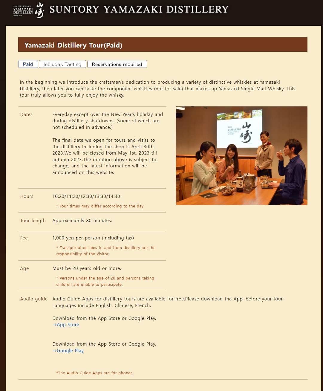 야마자키 증류소 투어는 두 가지가 있습니다.